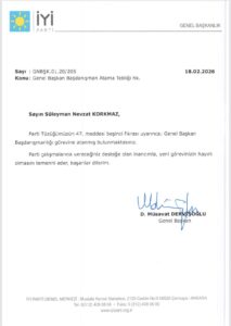 ADANA’nın Karaisalı ilçesinde 1998–2002 yılları arasında kaymakam olarak görev yapan Süleyman Nevzat Korkmaz, İYİ Parti Genel Başkanı Müsavat Dervişoğlu’nun başdanışmanlığına getirildi.